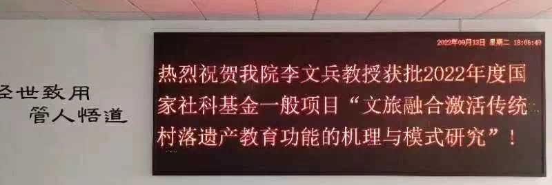 近日,全国哲学社会科学工作办公室公布了2022年国家社科基金年度项目和青年项目立项名单,bevictor1946韦德官网李文兵教授申报的课题“文旅融合激活传统村落遗产教育功能的机理与模式研究”获国家社科基金一般项目立项。