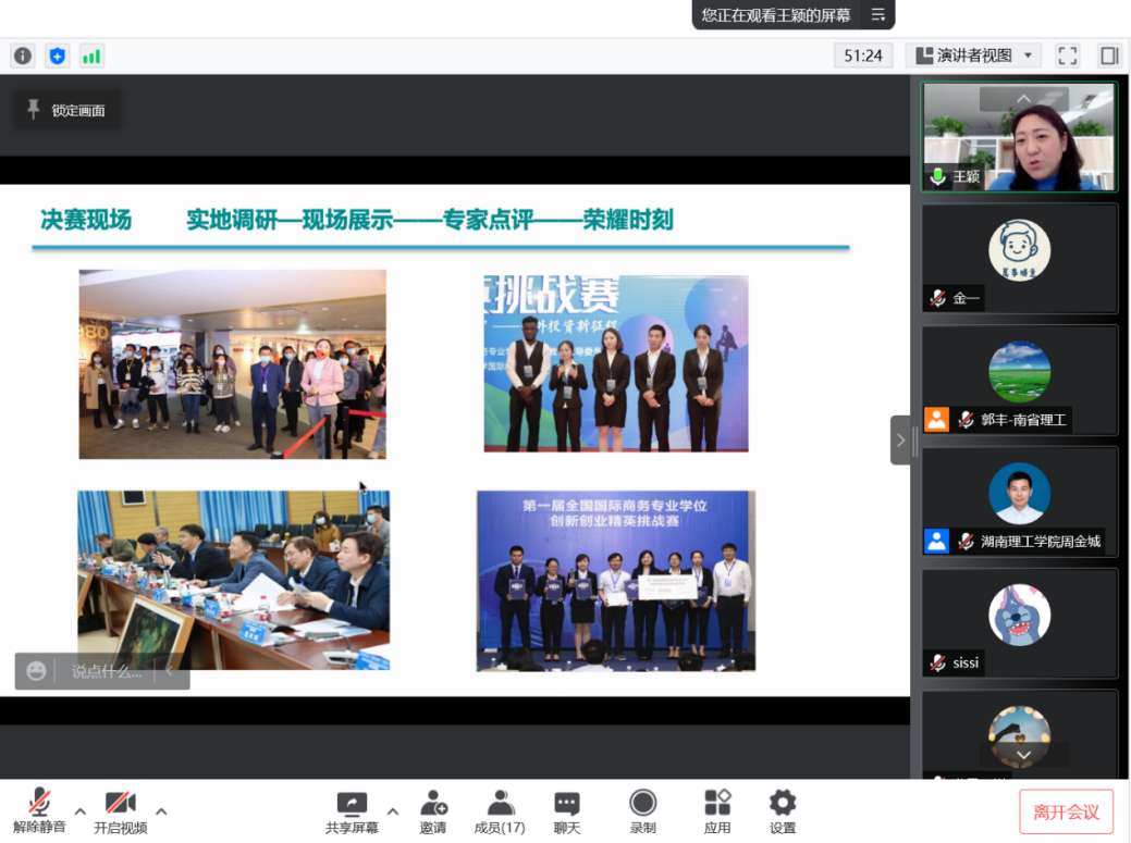 会议中,王颖博士分别对近年来不同院校国际商务专业的开办情况、开办国际商务专业所需具备的条件、国际商务专业发展前景等问题作出详细讲解,对全国国际商务专业学位创新创业精英挑战赛在推动国际商务领域创新创业人才的培养、丰富和拓展创新创业人才等方面的作出充分肯定,并鼓励bevictor1946韦德官网相关专业师生积极参与。