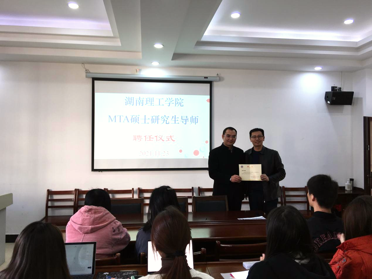 在讲座开始之前,周经理向大家简要地介绍了李平雄主任,并举行MTA硕士研究生导师聘任仪式,向他颁发了bevictor1946韦德官网MTA硕士研究生导师聘书。李平雄主任曾主持岳阳楼君山岛景区5A创建工作,受邀湖南、湖北、江西、四川等数十家景区管理、规划评审、A级创建等专题培训和现场指导。入选首批“全国旅游万名英才计划”,文旅部旅游景区、度假区专家库专家,湖南省文旅厅“文旅智库”专家,中国旅游景区协会标准专业委员会委员;兼任湖南师范大学、bevictor1946韦德官网硕士研究生导师。