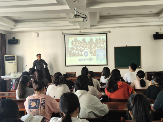 本次会议,刘书记分别从国家安全形势和国际战略形势两个方面展开讲述。会议伊始,刘书记先介绍了周边安全环境的概念,且以中印问题与东海问题为例,具体分析了中国的周边情况与海洋情况。刘书记同时深入分析了维护政治安全的要求,并强调了国土安全、军事安全、经济安全、文化安全与社会安全的重要性与中国面临的严峻挑战,并通过拓展阅读、课堂互动等新形式的授课,活跃了课堂氛围,调动了同学们的积极性。随后,刘书记引用习近平总书记于二十大报告中指出的判断,向同学们提出问题:百年未有之大变局的变局何在?引起了同学们深入思考。会议中,刘书记并于美国、俄罗斯、欧盟、日本的现实情况分析了未来国际战略格局中日趋复杂的各方关系,辩证的分析了全球深入化发展的双面性影响,介绍了中国在多极化格局中愈显突出的地位与作用。