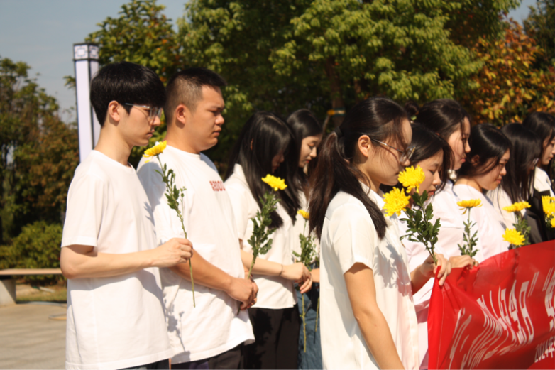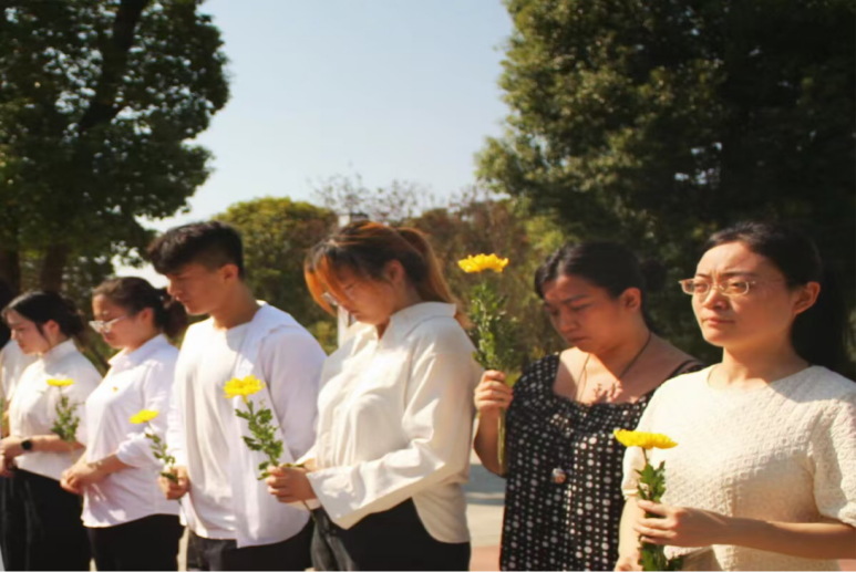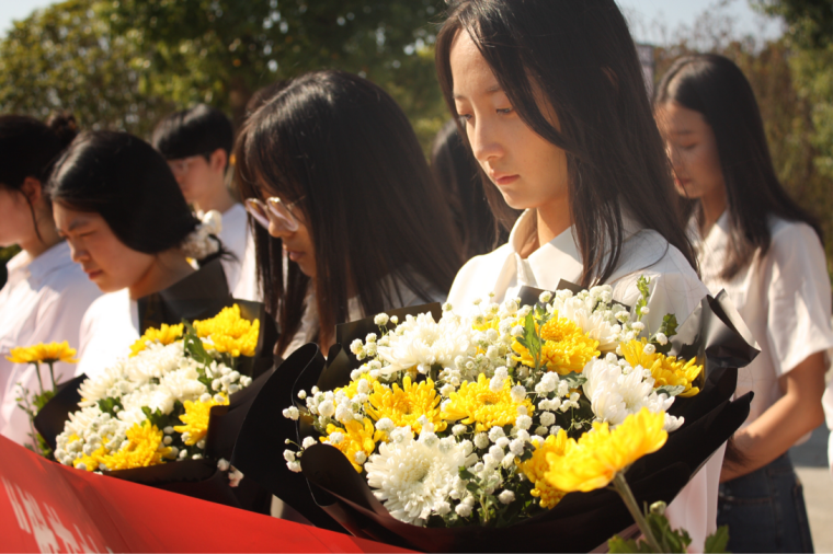 踏入园区,主持人庄重宣布仪式开始,雄浑有力的革命旋律触动了现场每一位参与者的心灵。随后,全体师生手捧鲜花,以肃穆之姿站立,进行了三分钟的静默哀悼,以此深切表达他们对英勇烈士们的敬仰与缅怀。
