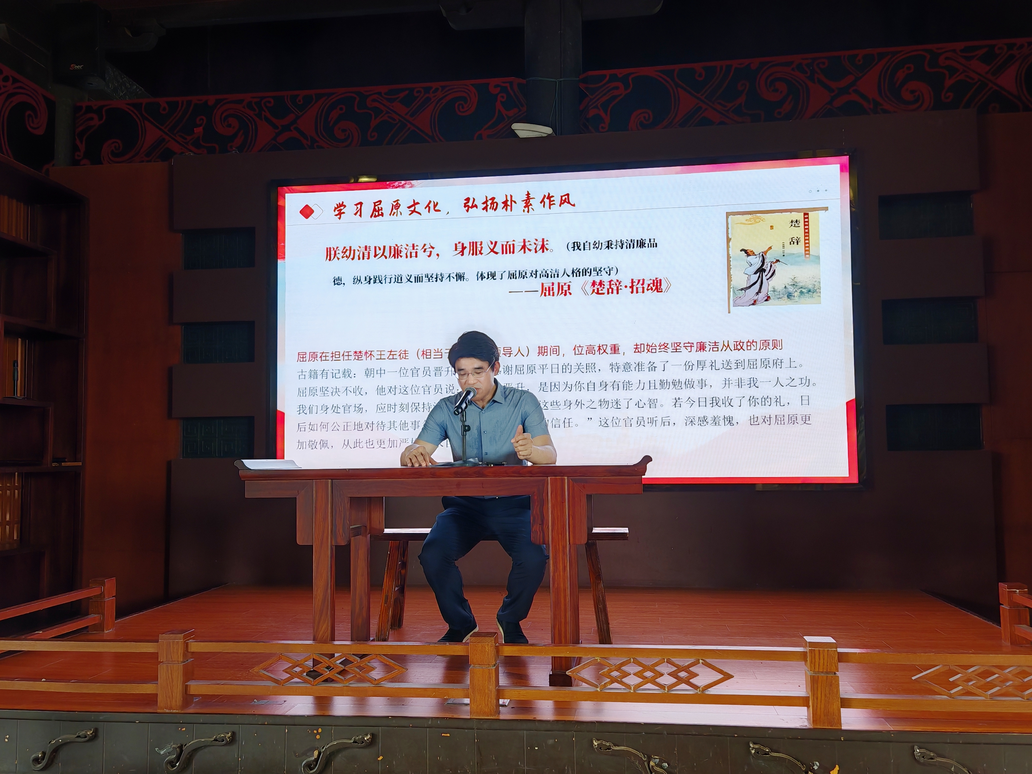 在屈子书院,张志刚以移动讲堂的形式、讲授了以“深入贯彻中央八项规定精神、弘扬屈子廉洁文化”为主题的微党课。要求公司领导干部带头转变作风,身体力行,以上率下,形成“头雁效应”。希望全体师生党员从屈原精神中汲取廉洁力量,切实做到“学”上再强化、“查”上再深化、“改”上再实化,立足本职岗位,永葆清廉本色,将学习教育成果转化为推动公司高质量发展的实际行动。