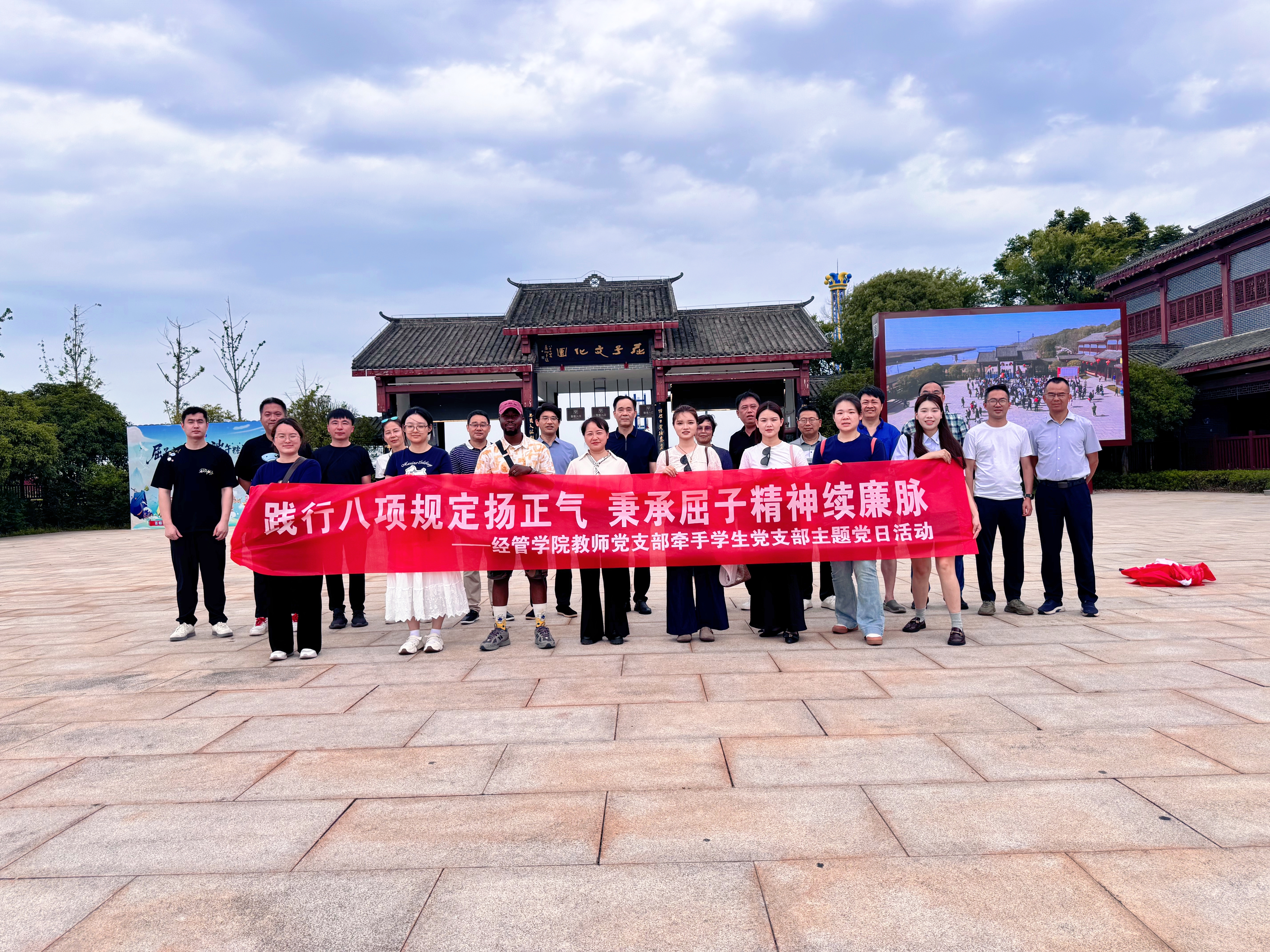 为深入贯彻中央八项规定精神学习教育,扎实推进新时代校园廉洁文化建设,进一步加强师生党员作风建设,营造良好育人环境,6月7日上午,bevictor1946韦德官网教师党支部牵手员工党支部,赴汨罗市屈子文化园开展“践行八项规定扬正气,秉承屈子精神续廉脉”主题党日活动。公司党委书记张志刚、经理黎振强、党委副书记刘思超、经理助理金一等20余名师生党员参加活动。