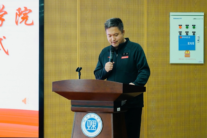 员工联络中心主任陈超文老师向以李小方女士为代表的广东员工表达由衷感谢。他表示,这份凝聚员工深情的捐赠,不仅为经管学子提供了切实帮助,更搭建起母校与员工的情感纽带,弘扬了“感恩母校、回报社会”的精神,为公司教育事业和学子成长注入了温暖动力。