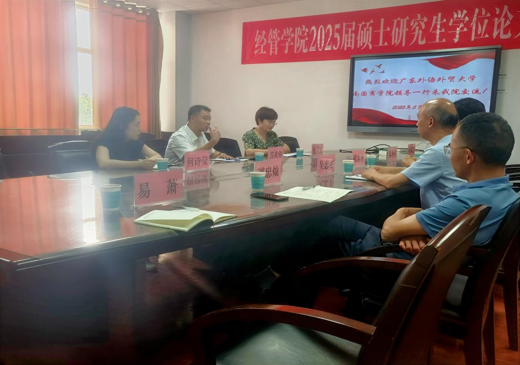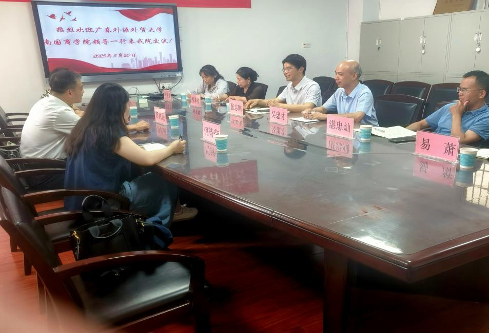 2025年5月20日上午,为推进团队建设高质量发展,广东外语外贸大学南国商公司经济公司经理苏武俊、管理公司执行经理文佑云、管理公司行政秘书何诗莹一行三人来到bevictor1946韦德官网,就独立公司转设及硕士点建设等重要事项开展学习交流活动,旨在共商高等教育发展新路径。