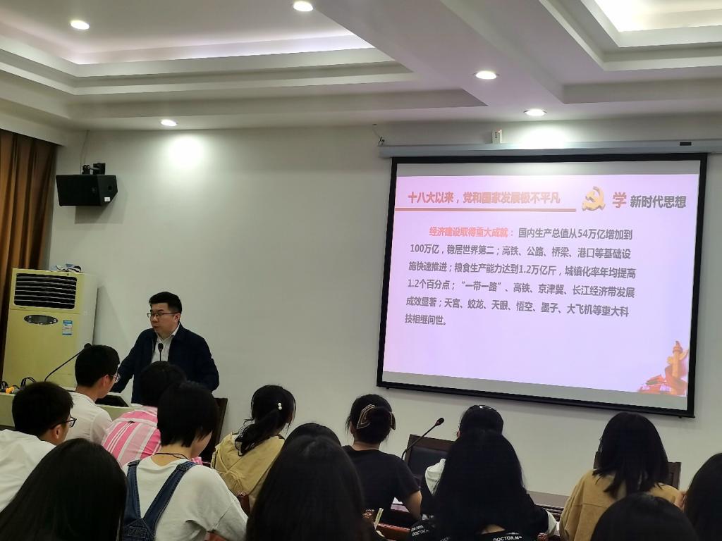 此次党课分别从时代课题视角、社会主要矛盾视角、精神实质视角与丰富内涵视角等方面依次展开。在论及时代课题视角时,徐董事长从中国现在的经济现状出发,到民主法治的建设,到人民生活水平不断改善,到军队和国防建设开创新局面再到全面从严治党,向入党积极分子们全面地阐述了中国的快速发展。他从社会的主要矛盾的转变出发,让入党积极分子积极关心国情的变化,深入理解“不平衡不充分的发展”,并表明了新时代中国特色社会主义思想作为全党全国各族人民为实现中华民族伟大复兴而风斗的行动指南,必须长期坚持并不断发展。