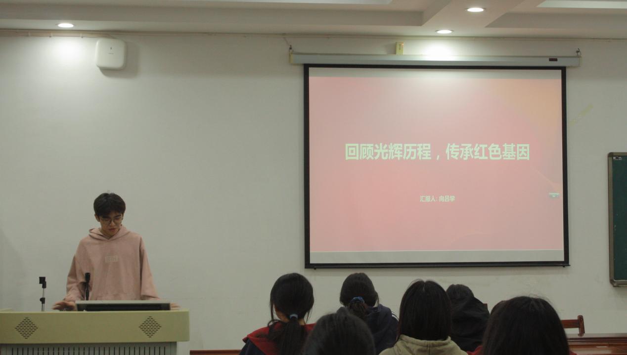 接着,向吕学同学以“新中国光辉历史与红色基因的传承意义”为题,回顾新中国成立以来的重大历史事件,对红色基因的概念进行深入解析,同时从传承方式、时代意义、现代价值等方面展开论述,指出红色基因是中国共产党人的精神内核,传承红色基因是当代青年党员的责任与使命。