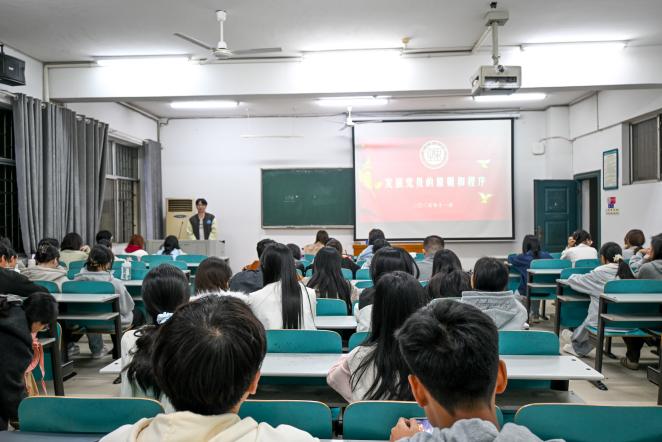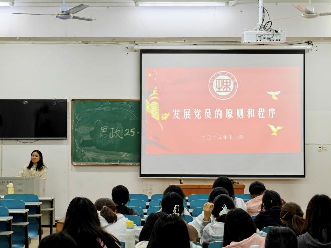本次讲座围绕发展党员的原则与程序展开:原则上,强调“政治标准首位”,公司按实际表现发展;程序上,拆解各阶段核心要求,让同学们明确入党流程。