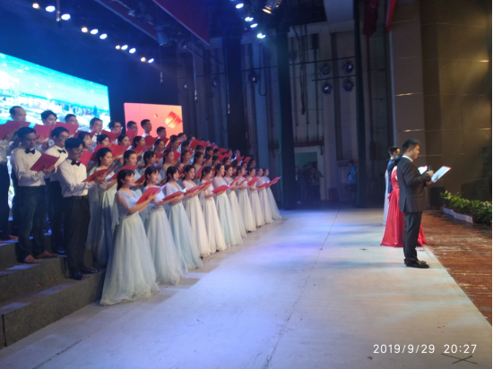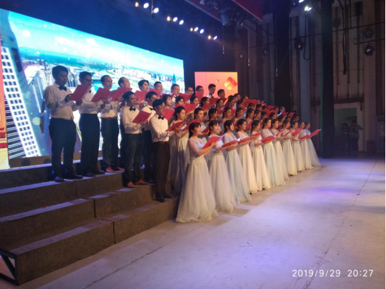 bevictor1946韦德官网60多名师生,在经理徐四星教授、总支书记王淑霞教授的带领下,在公司工会刘志军主席的指导下,经过近半个月的训练,在9月29日参加了公司组织的庆祝建国70周年朗诵比赛,取得了优异的成绩。