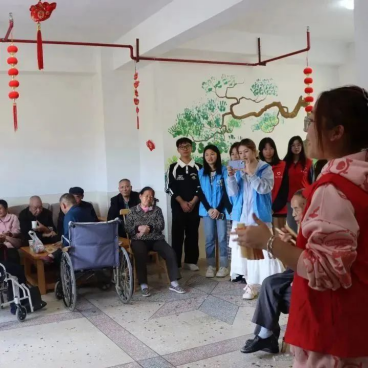 敬老院活动厅内,老人们或在聊天唠家常、或在两两下围棋一旁几许“观战”、或在电视机前收看节目。志愿者们首先为各位长者送去一杯暖暖的菊花茶。再由主讲人开场后,一曲极具年代感的老歌青春欢快的萦绕在正厅中。