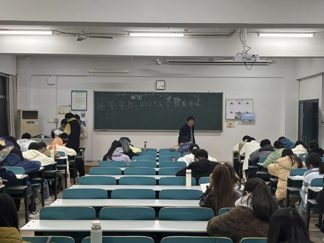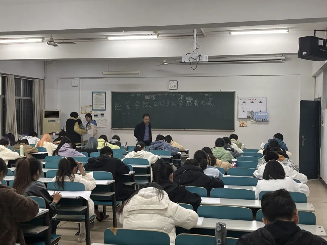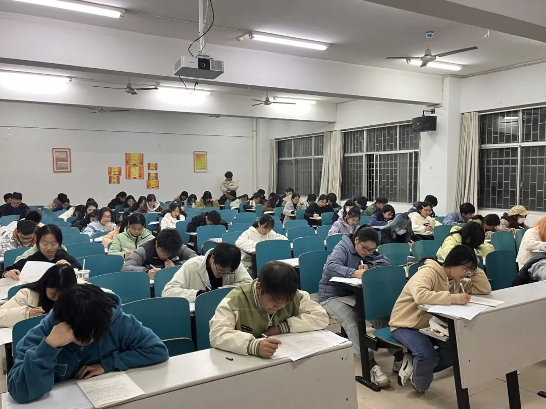 晚上七点,考试正式开始,每个同学都专注于眼前的试卷。在班级助理和老师的监督下,他们开始作答。考试氛围十分紧张,但同学们仍保持良好的态度完成了试卷。随着考试尾声来临,每位同学都自信交出了自己的答卷。