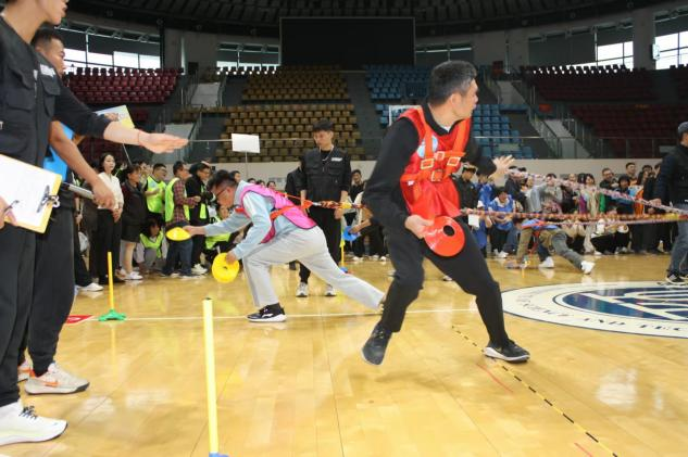 最后的趣味拔河环节中,教师们手持彩旗,腰系绳索,鼓足干劲,奋力向前投掷,紧张的气氛弥漫开来,感染了现场的每一位观众,也为这场竞赛画上了一个完美的句点。