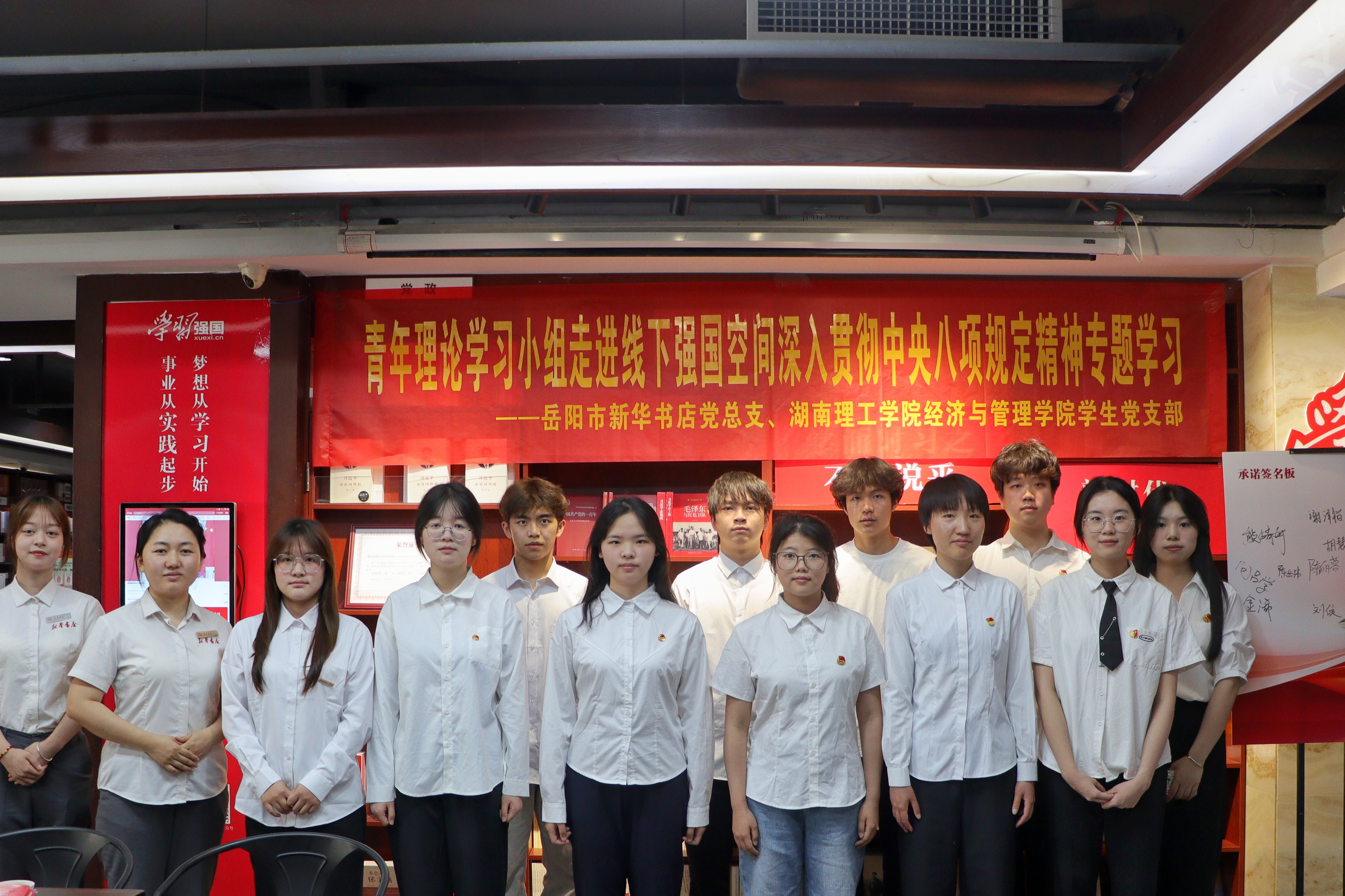 为充分发挥青年员工党员、干部模范带头作用,引导青年员工深刻领会中央八项规定精神的丰富内涵和实践要求,5月13日下午,公司员工党员、干部走进岳阳市新华书店“学习强国”线下体验空间,开展“深入贯彻中央八项规定精神”专题学习活动。