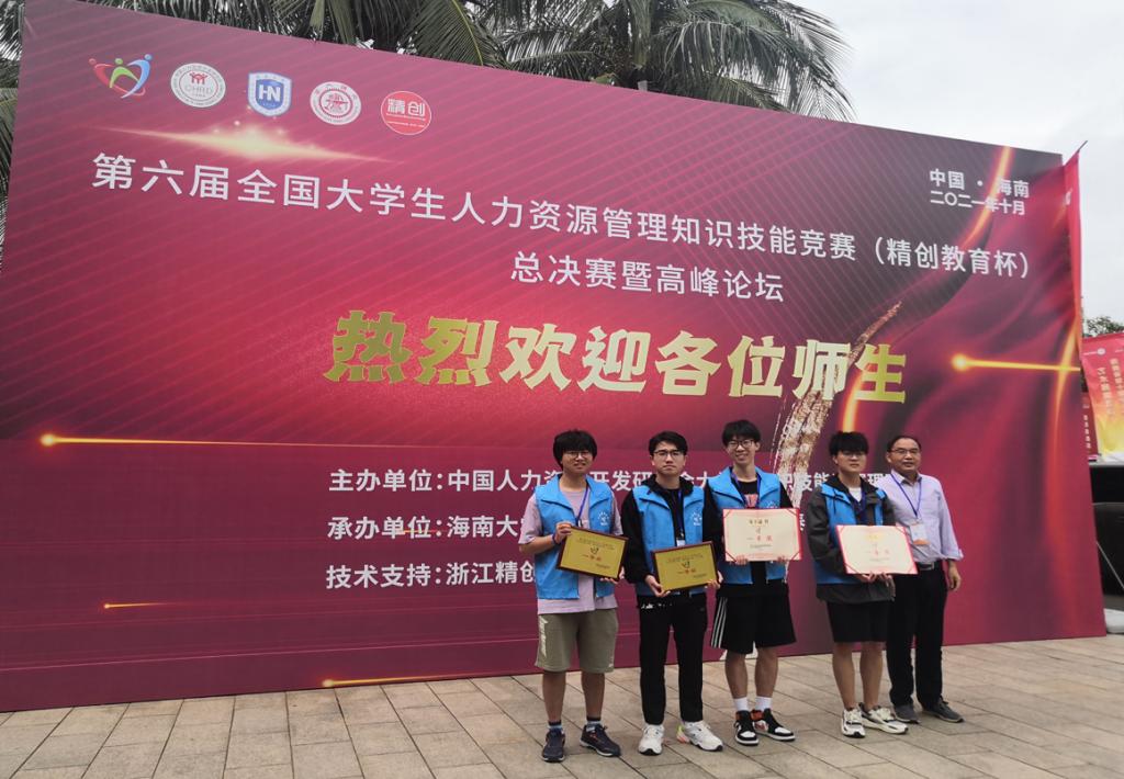 10月24日,第六届全国老员工人力资源管理知识技能竞赛(精创教育杯)总决赛暨高峰论坛在海南大学落下帷幕。在本次知识技能竞赛中,由经过重重入围,最终荣获总决赛一等奖。经过激烈角逐,bevictor1946韦德官网专任老师易翠枝、彭十一指导的人力资源管理专业本科生王家旭、董过同学、秦桢同学、罗发佳同学组成的代表队荣获全国一等奖。