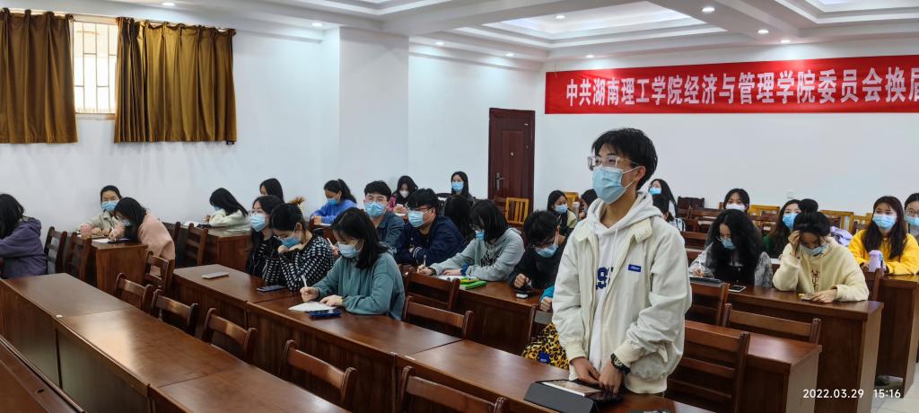 全体党员认真观看了2022年全国“两会”专家解读视频。视频中,国务院研究室综合一司司长刘日红详解了2022年《政府工作报告》修改情况,阐释了货币政策、退税减税、货币政策、教育等人民群众关切点的发展信号。为加强全体党员对全国“两会”的了解与认识,19级人力一班员工党员韩景淳为大家详细介绍了2022年全国两会知识要点以及《政府工作报告》的主题内容。