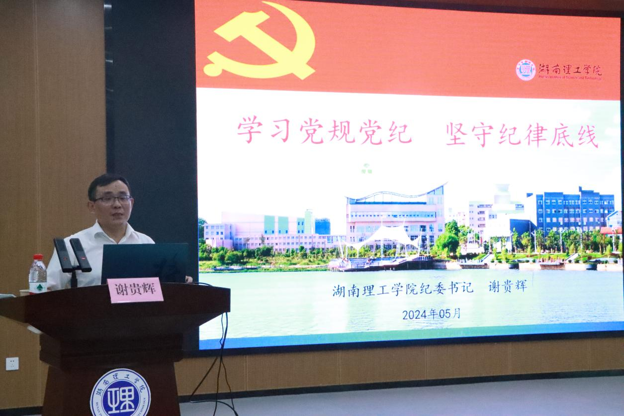 随后,谢书记通过大量典型案例为现场师生党员进行了深入浅出的讲解,对开展党纪学习教育作专题传达和重点工作部署。他强调,广大师生党员要明纪律、知敬畏、存戒惧、守底线、做表率,主动带头将新时代廉洁文化内化于心、外化于行。