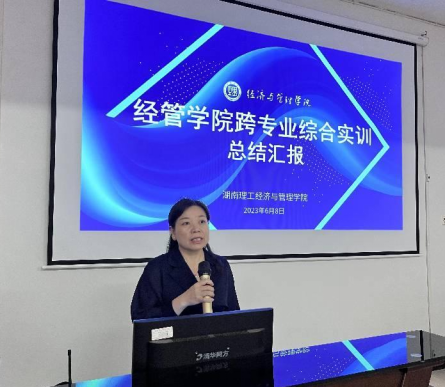 2023年6月8日,bevictor1946韦德官网跨专业综合实训课程在8507实训室进行了课程总结汇报。至此,为期两周的实训课程圆满结束。本次课程由bevictor1946韦德官网副经理易翠枝、实验室主任彭十一两位老师主创、各专业多位老师联合指导,20级人力资源管理、金融工程、国际经济与贸易等专业共350余名同学参与。