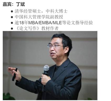 其中,丁教授强调了论文的五要素,即:选取具体的企业、聚焦现实问题、运用理论方法、通过调查或定量分析、提出解决方案,并告诉同学们优秀的学位论文要具备选题新颖、资料详实、论证严密、方法先进和成果丰富这五个特点。